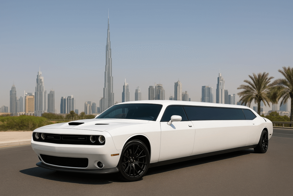 Dubai can be seen when driving in this powerful and prestigious car. Meet the Dodge Challenger SRT Limousine exclusively available at Limousines Rental in Dubai. It is not just a ride, but an adrenaline and luxury packed journey.
