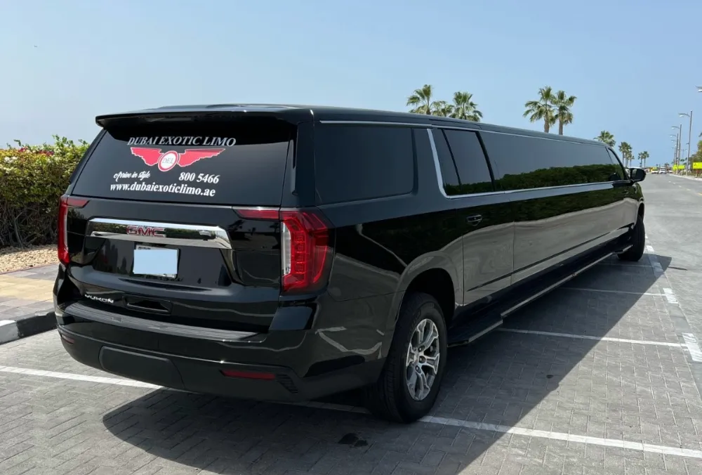 If you are searching for Limo Rental Ajman, the GMC Denali 2.0 limousine is an excellent choice for weddings, corporate events, VIP transfers, birthday parties, and airport transportation. With a professional chauffeur and modern luxury features, it provides a smooth and sophisticated ride across Ajman and the UAE.
